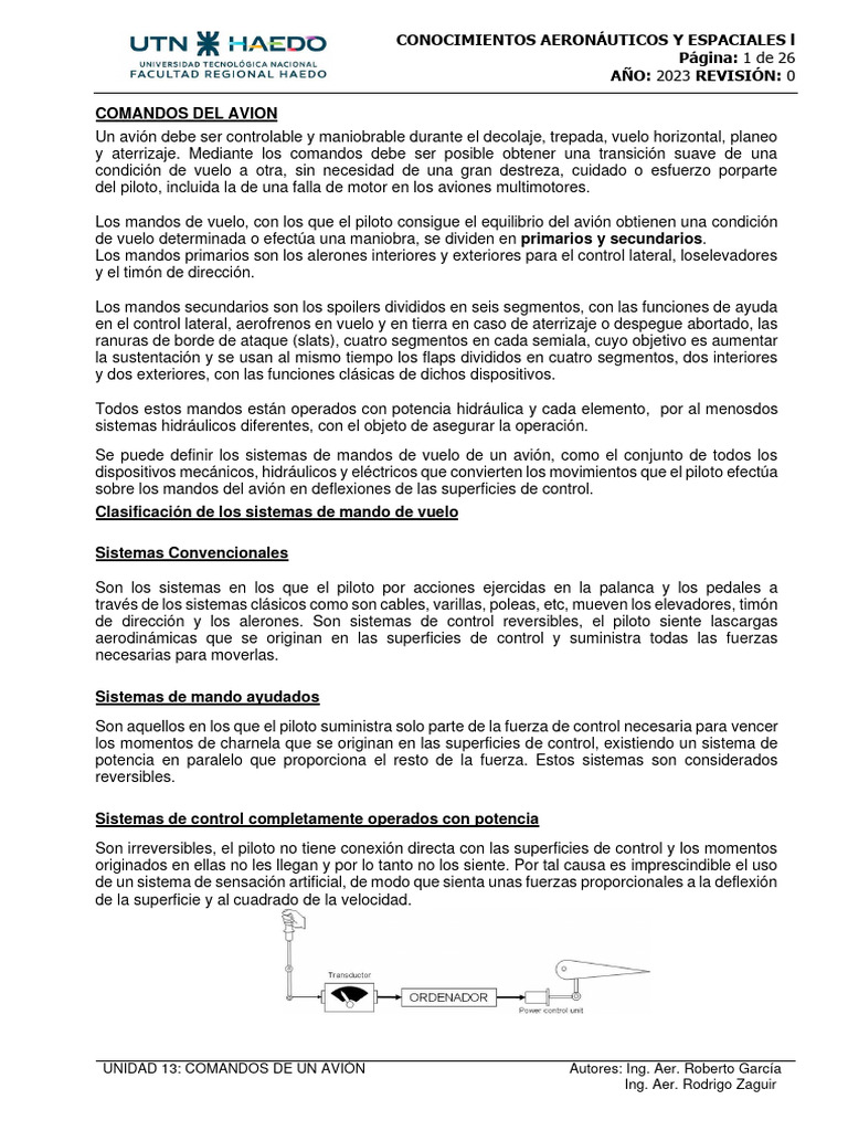 UNIDAD 13: COMANDOS DE UN AVIÓN Autores: Ing. Aer. Roberto García