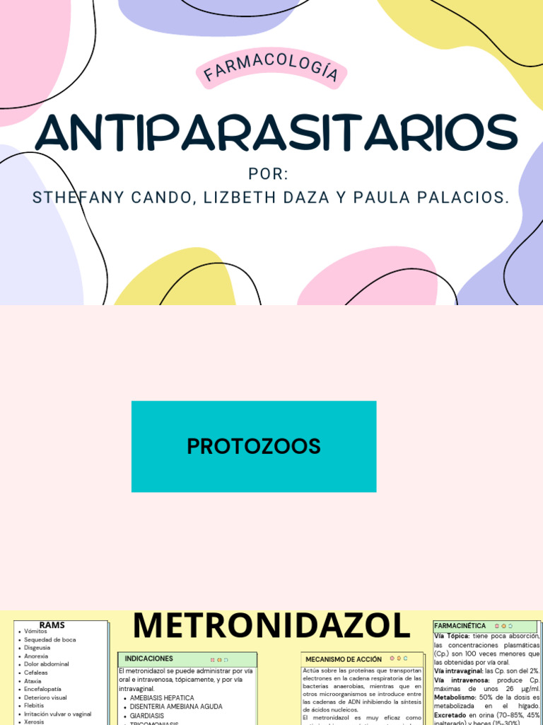 Cefaleas El metronidazol se puede administrar por vía Actúa sobre las proteínas que transportan Vía intravaginal: las Cp. son del 2%.