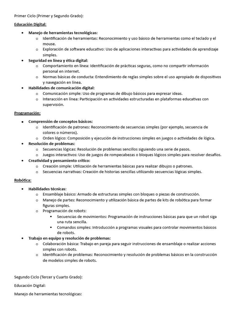 Segundo Ciclo (Tercer y Cuarto Grado):