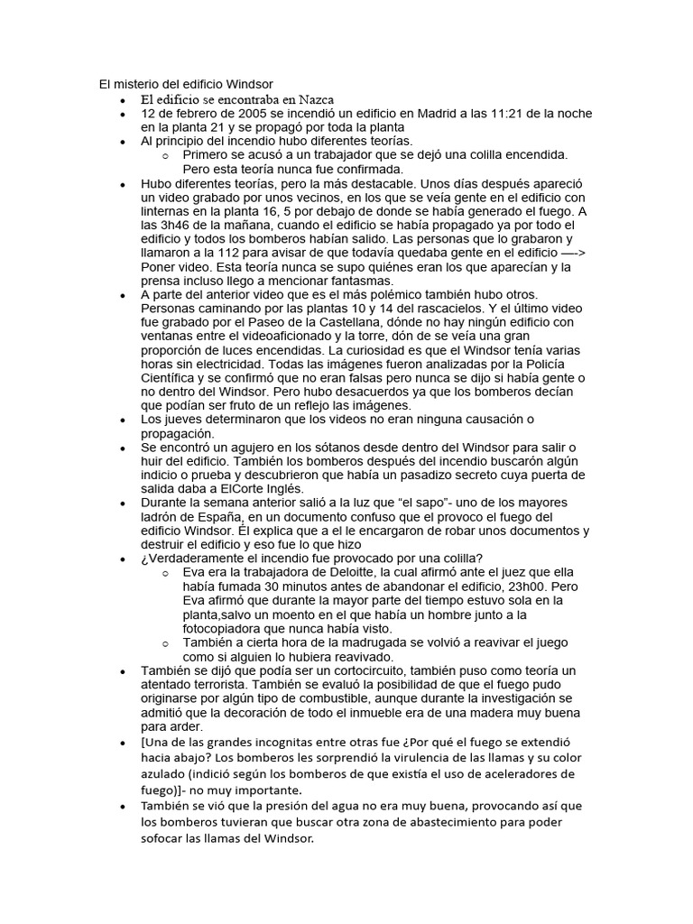 edificio Windsor. Él explica que a el le encargaron de robar unos documentos y