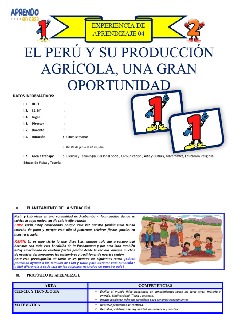 de cantidad. acciones de juntar, separar, cultivos de papa y otros cantidades de como: muchos, pocos, cotejo