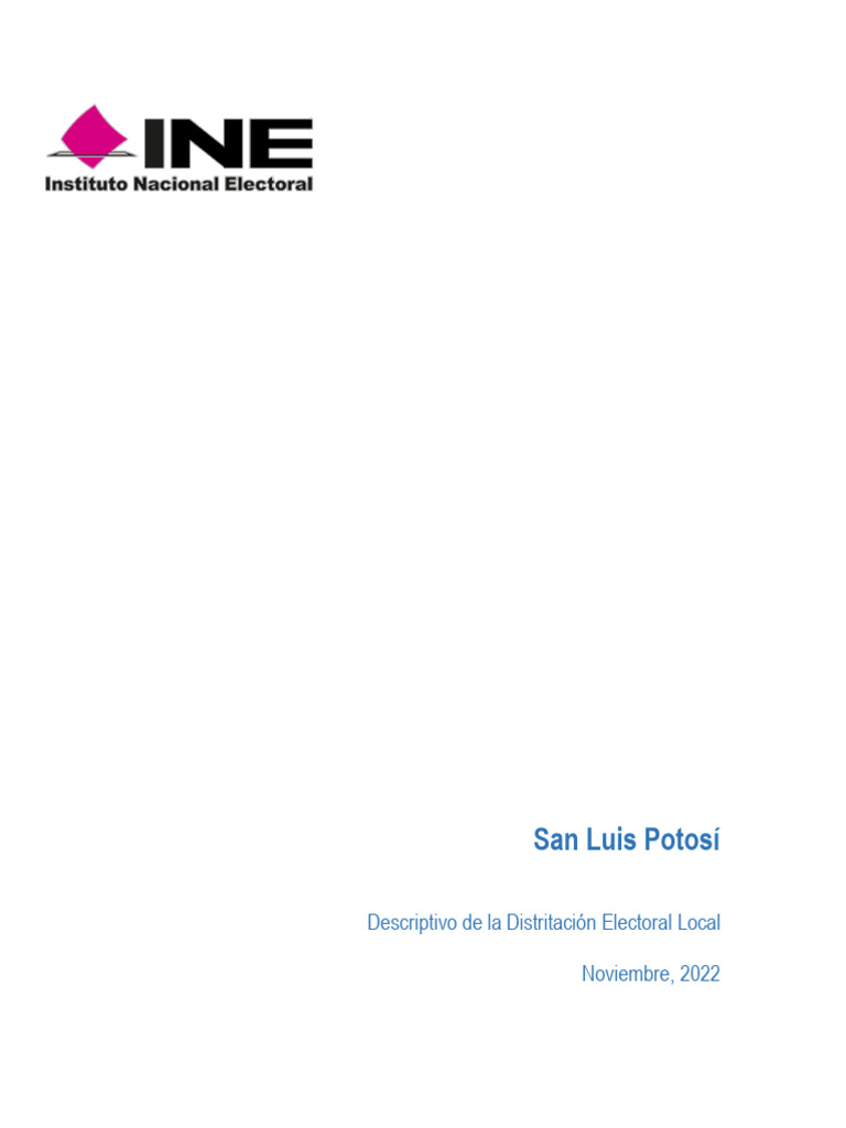 • SAN LUIS POTOSI, integrado por 49 secciones: de la 0922 a la 0923, de la 0933 a la 0935, de la 0937 a