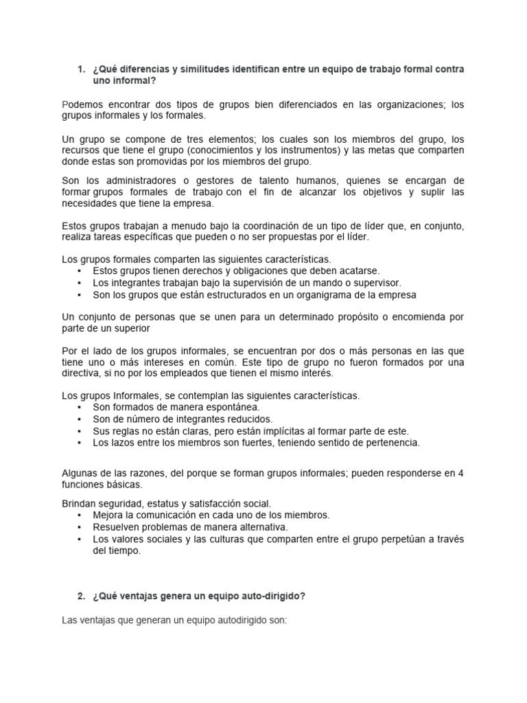 ¿Qué diferencias y similitudes identifican entre un equipo de trabajo formal contra