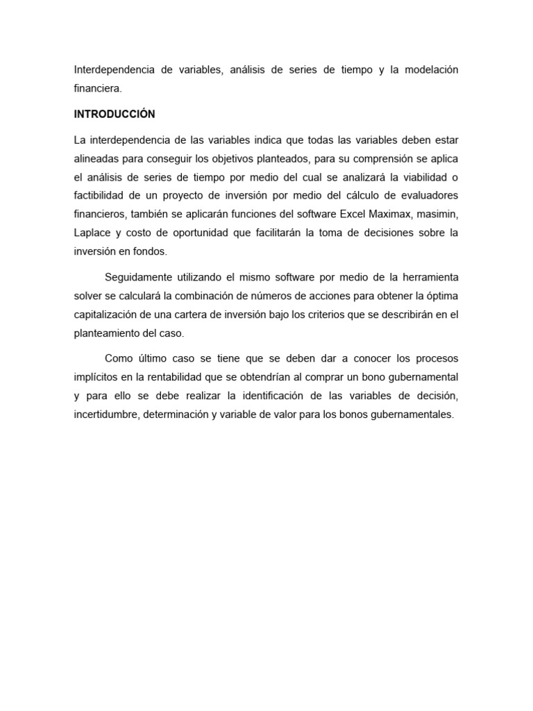 Interdependencia de variables, análisis de series de tiempo y la modelación