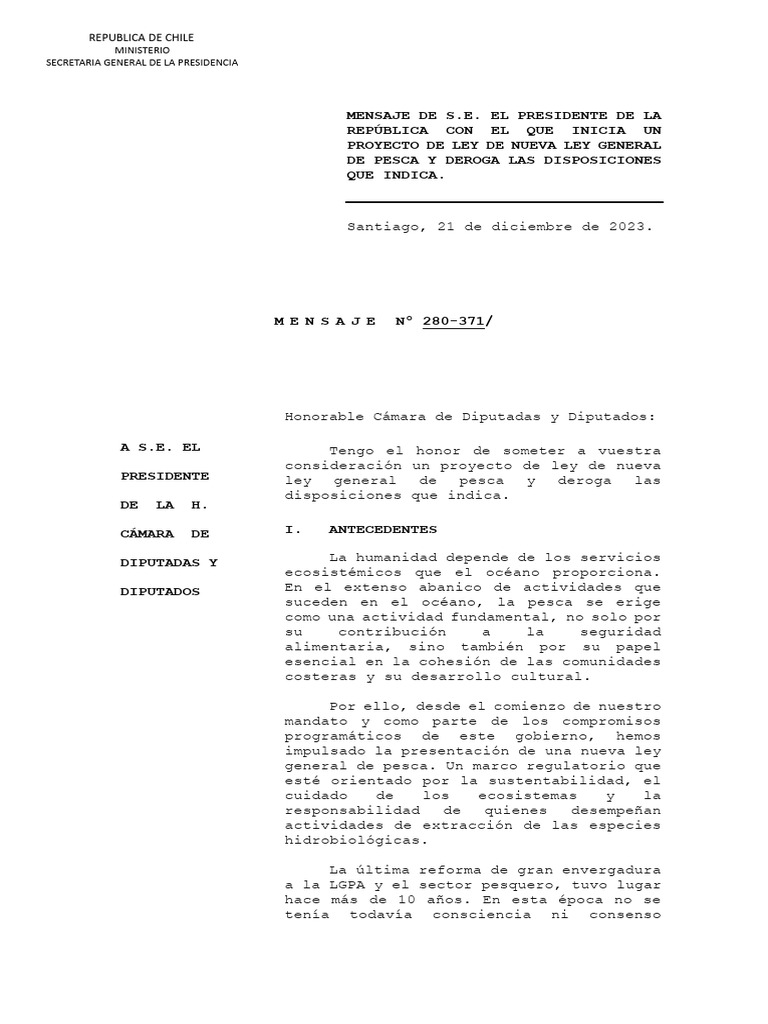 MENSAJE DE S.E. EL PRESIDENTE DE LA