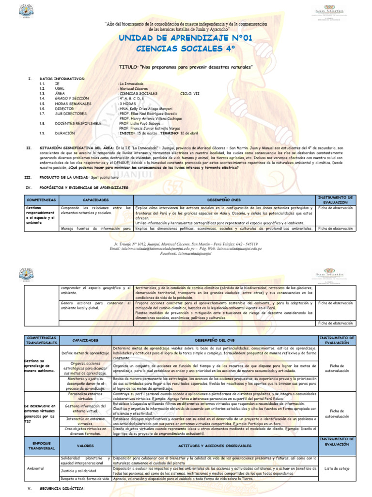 Jr. Triunfo N° 1012, Juanjuí, Mariscal Cáceres, San Martín – Perú Telefax: 042 - 545119