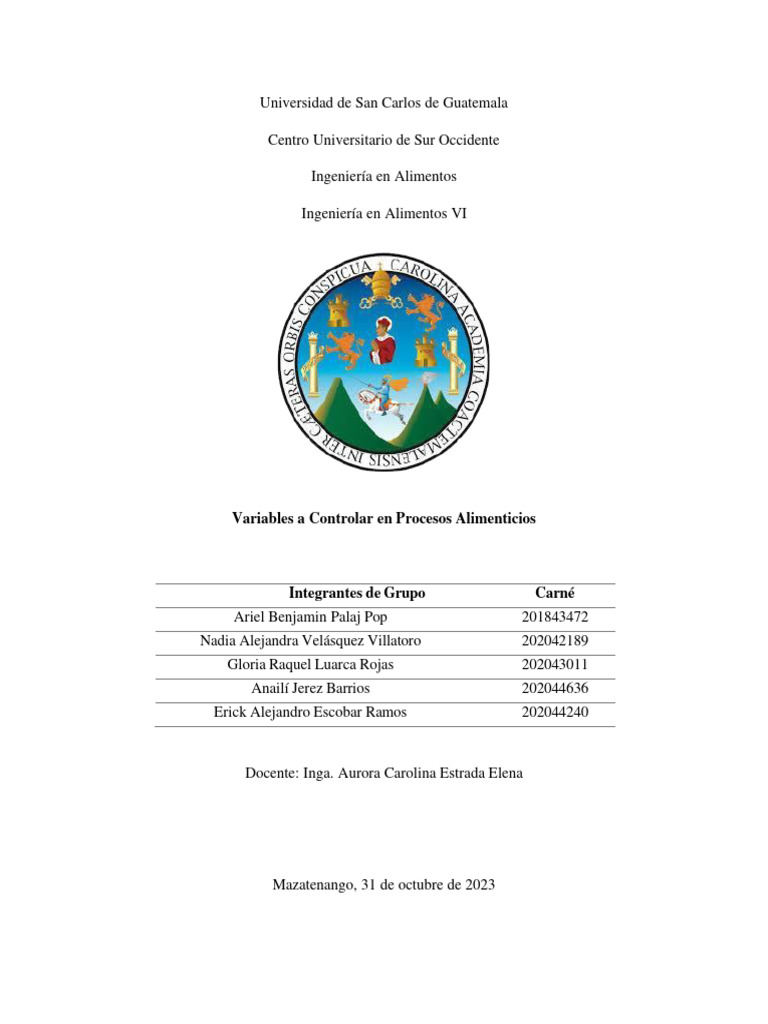 - Investigar las variables que se controlan en un proceso alimenticio.