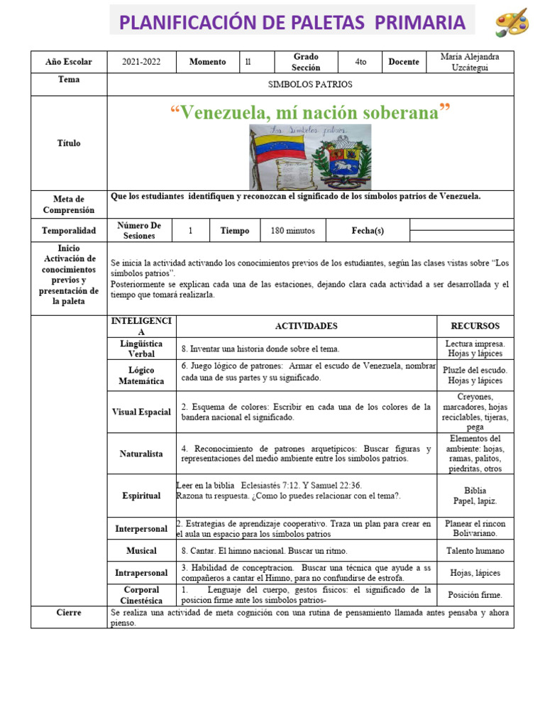 Meta de Que los estudiantes identifiquen y reconozcan el significado de los símbolos patrios de Venezuela.
