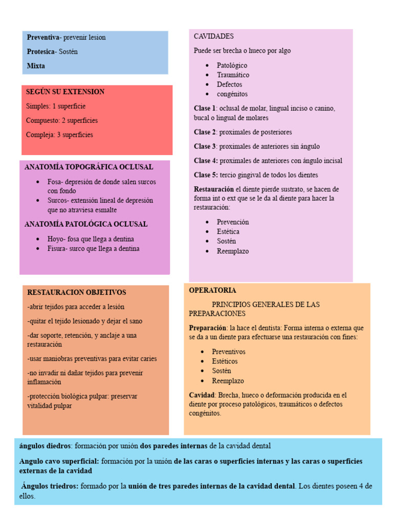 Involucra tecinas, maniobras o sustancias y materiales utilizados en una preparación y su restauración que