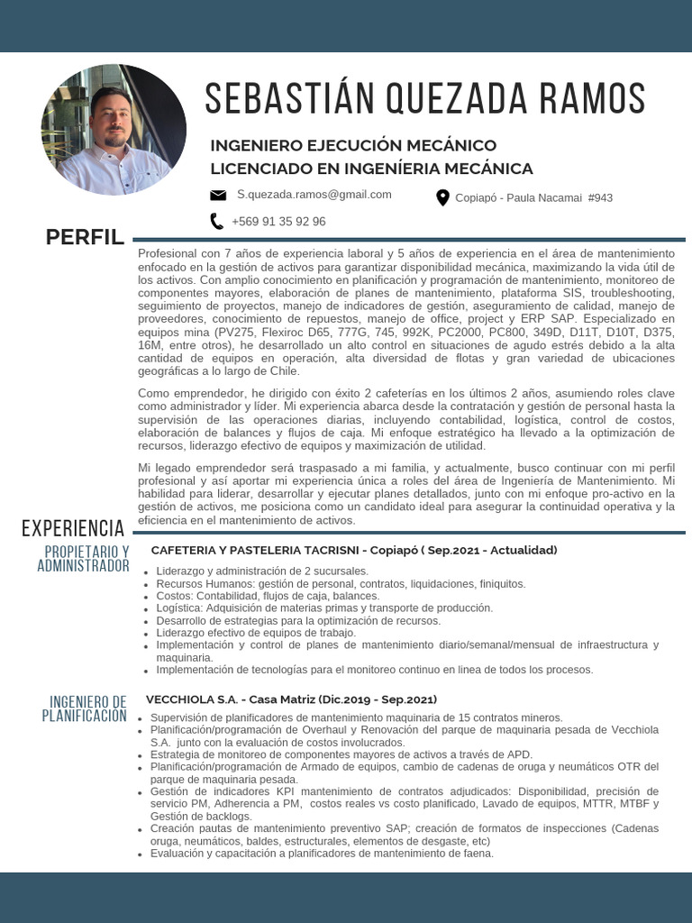 profesional y así aportar mi experiencia única a roles del área de Ingeniería de Mantenimiento. Mi