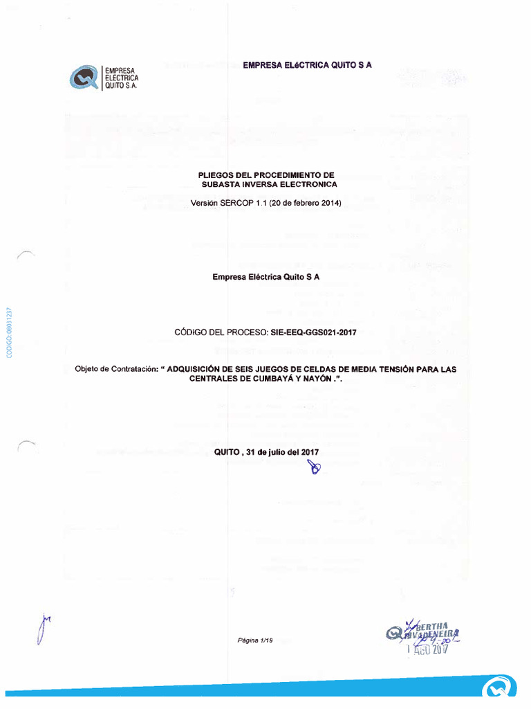Eléctrica Quito § A. se habiltaran afin de que los oferentes envien sus ofertas a través del portal insitucional det