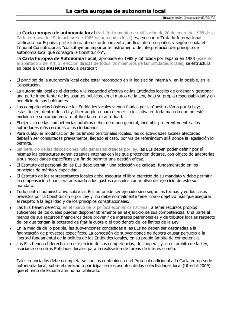La Carta Europea de Autonomía Local, aprobada en 1985 y ratificada por España en 1988 (excepto