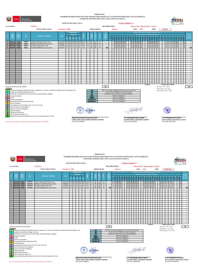 COD COD Semanal DIAS EFECTIVAS DE TRABAJO ESCOLAR TOTAL DE