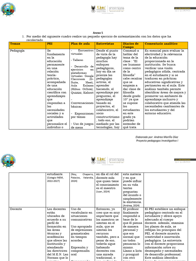 Temas PEI Plan de aula Entrevistas Diarios de Comentario analítico