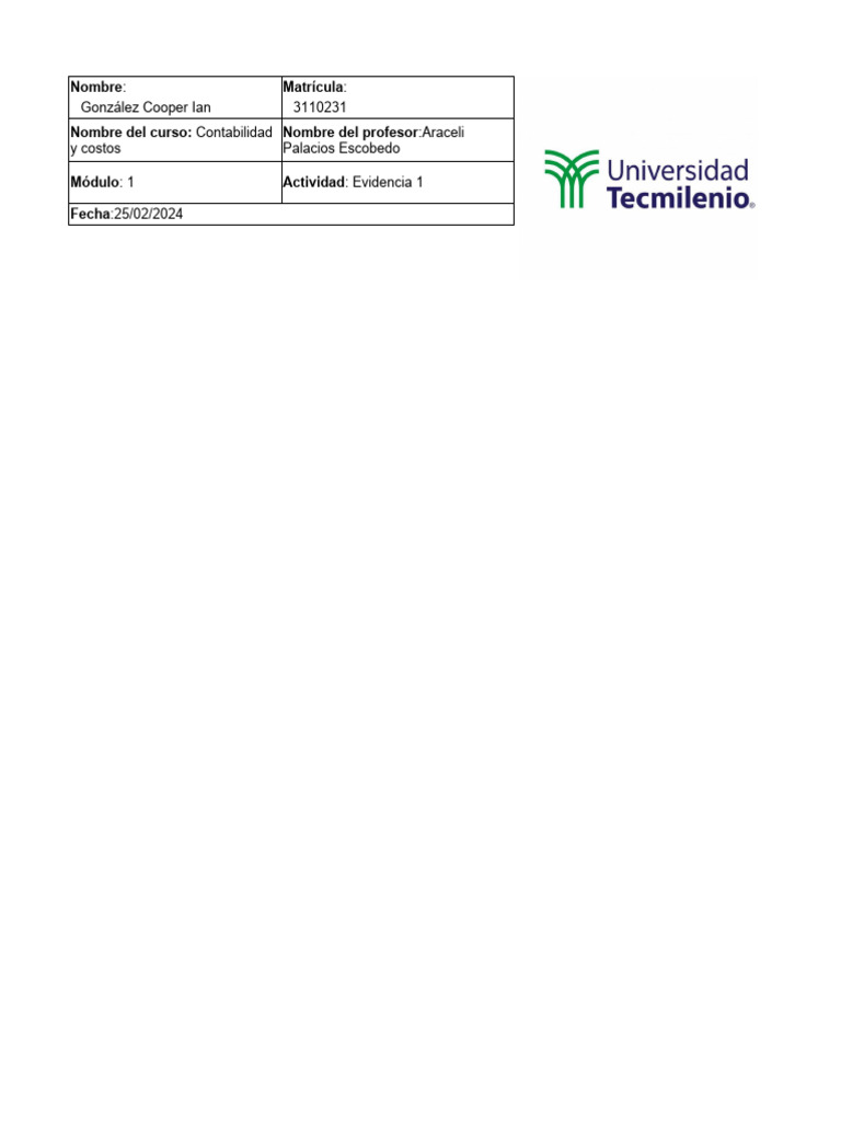 Nombre del curso: Contabilidad Nombre del profesor:Araceli