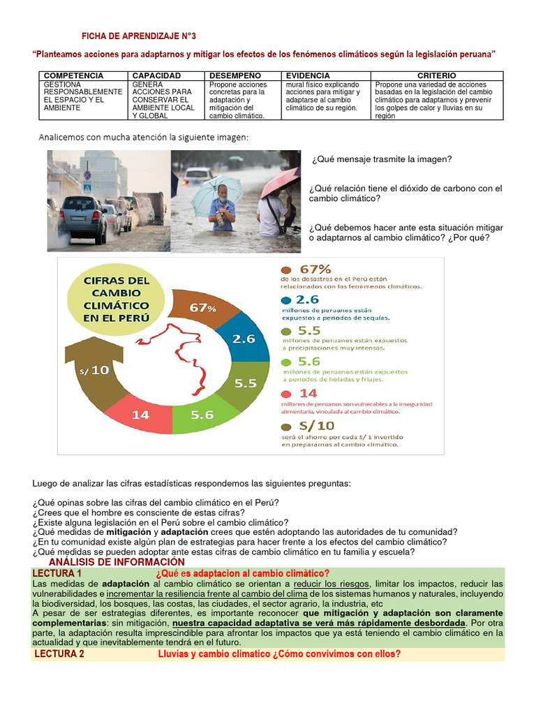 LECTURA 2 Lluvias y cambio climatico ¿Cómo convivimos con ellos?