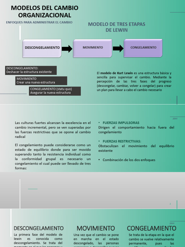 transformación.Entre los modelos más destacados se encuentra el modelo de Lewin, que se basa en
