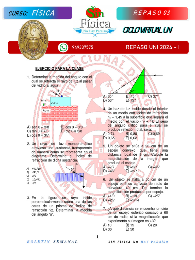 refracción √2. Determinar la medida 7. ¿A qué distancia se encuentra un cirio