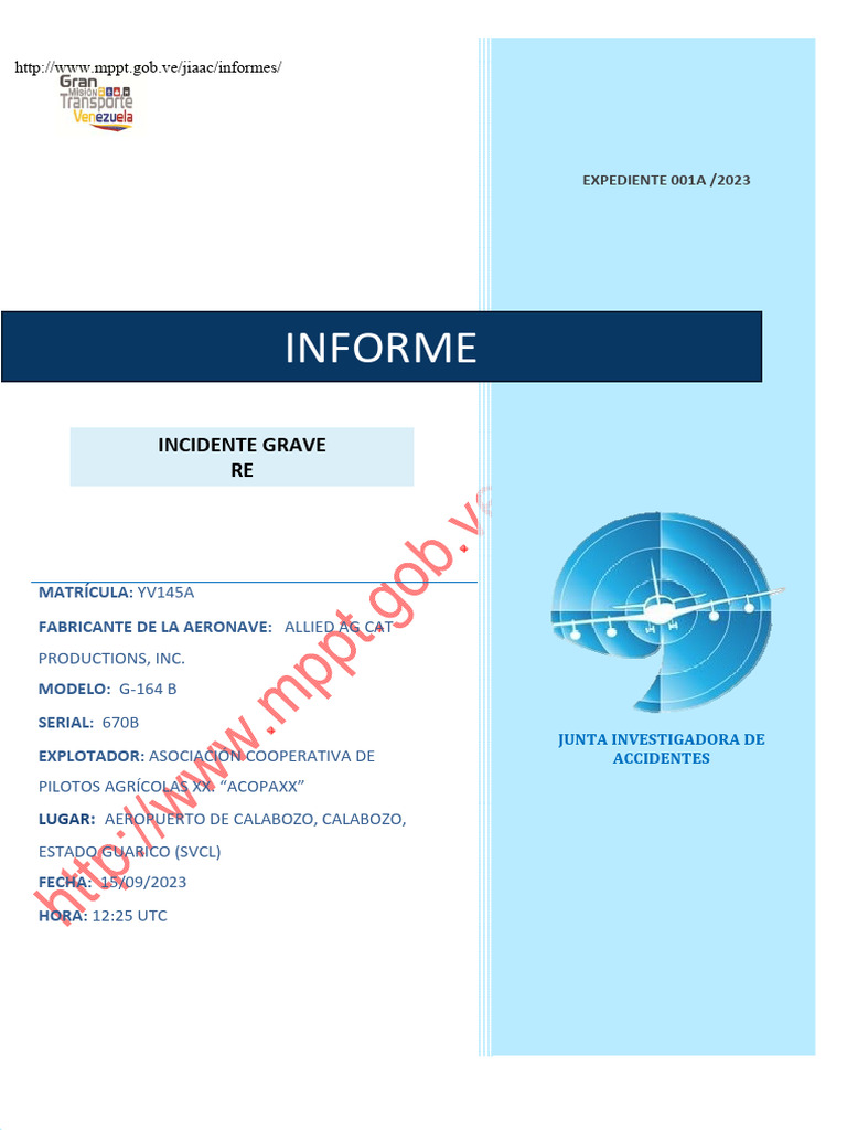 INFORME DE INCIDENTE GRAVE DE AVIACIÓN