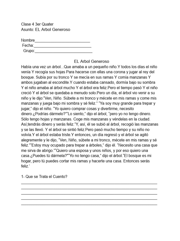 dinero.¿Podrías dármelo?”“Lo siento,” dijo el árbol, “pero yo no tengo dinero.