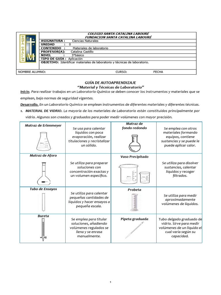 Desarrollo. En un Laboratorio Químico se emplean instrumentos de diferentes materiales y diferentes técnicas.