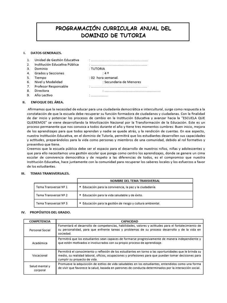 Programación Anual de Tutoría Secundaria