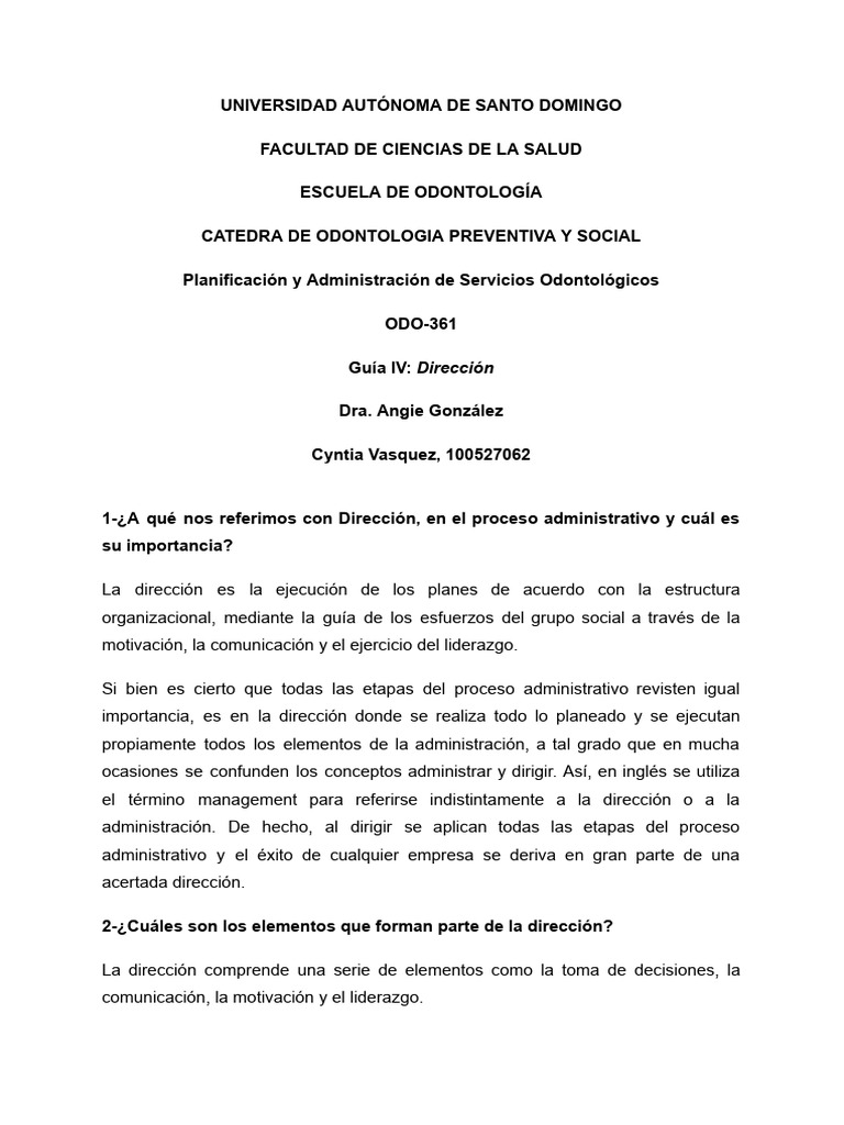 1-¿A qué nos referimos con Dirección, en el proceso administrativo y cuál es