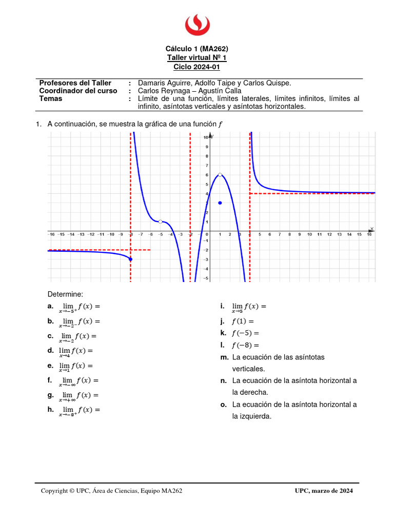 Temas : Límite de una función, límites laterales, límites infinitos, límites al