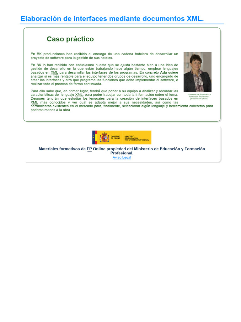 características del lenguaje XML, para poder trabajar con toda la información sobre el tema. Ministerio de Educación y