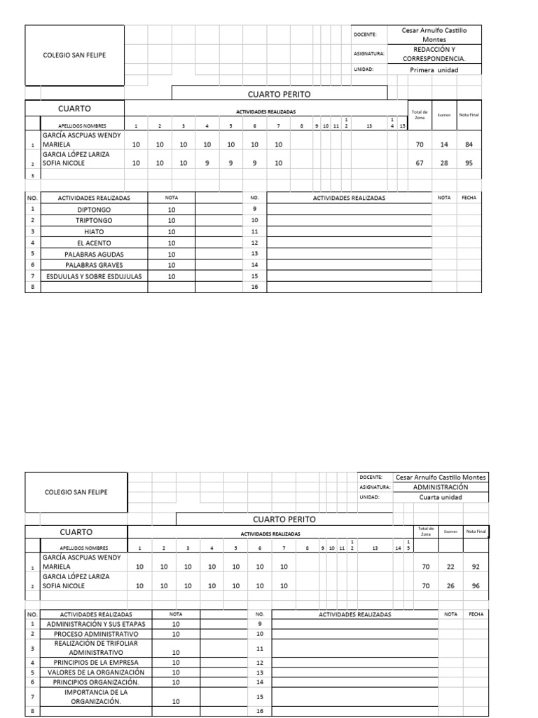 NO. ACTIVIDADES REALIZADAS NOTA NO. ACTIVIDADES REALIZADAS NOTA