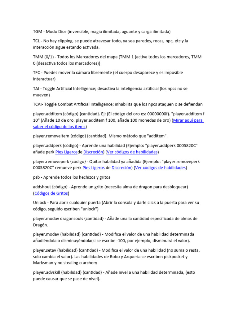 10" (Añade 10 de oro, player.additem f 100, añade 100 monedas de oro) (Mirar aquí para