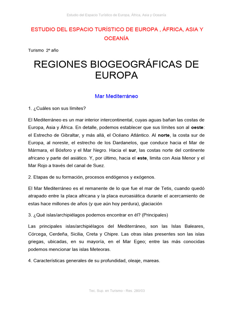 ESTUDIO DEL ESPACIO TURÍSTICO DE EUROPA , ÁFRICA, ASIA Y