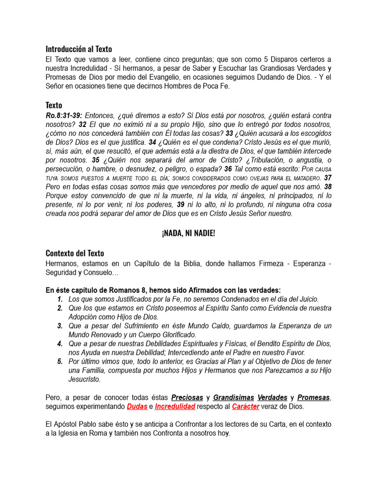 Ro.8:31-39: Entonces, ¿qué diremos a esto? Si Dios está por nosotros, ¿quién estará contra