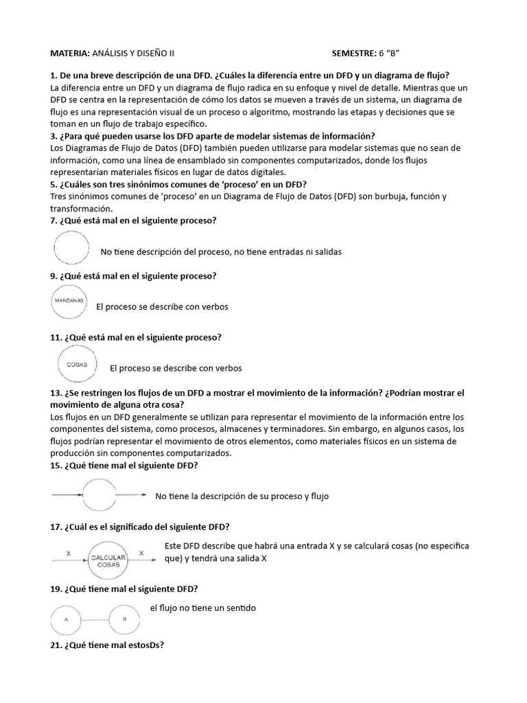 1. De una breve descripción de una DFD. ¿Cuáles la diferencia entre un DFD y un diagrama de flujo?