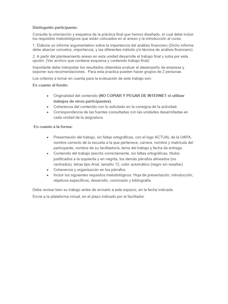 debe abarcar concetos, importancia, y las diferentes método y/o técnica de análisis financiero)