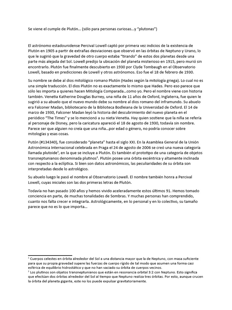 Se viene el cumple de Plutón… (sólo para personas curiosas…y “plutonas”)