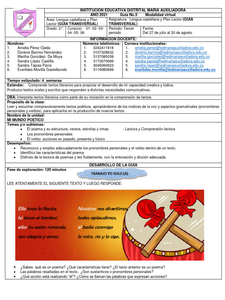 1. Amelia Pérez Ojeda 1. 3242411918 1. amelia.perez@iedmariaauxiliadora.edu.co