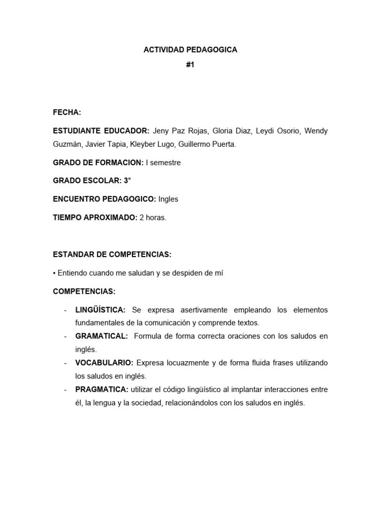 saludos en inglés. Luego los maestros en formación realizaran las