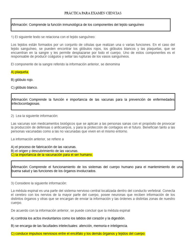 PRÁCTICA PARA EXAMEN CIENCIAS