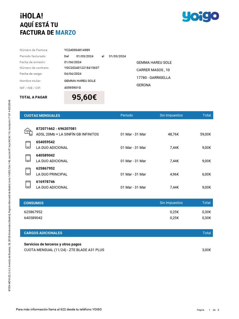 Factura Yoigo Marzo 2024: Detalles y Consumos