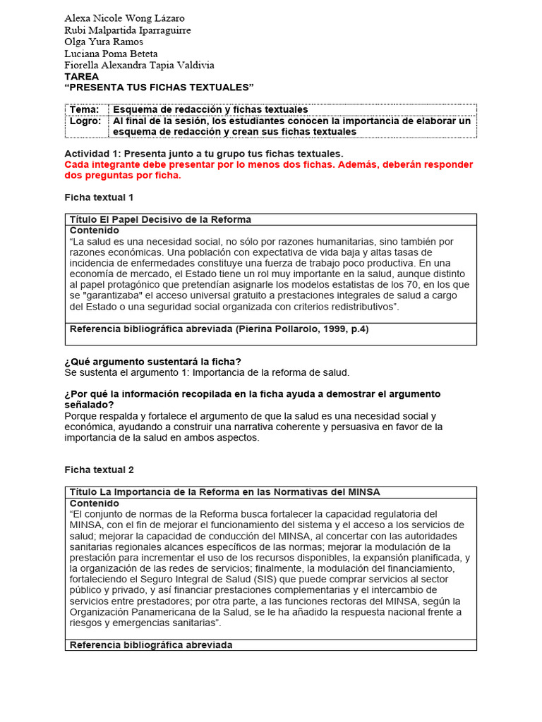 Actividad 1: Presenta junto a tu grupo tus fichas textuales.