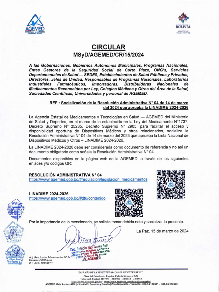 Salud — AGEMED, en usa de las facultades y atribuciones que le otorga el Decreto Supremo