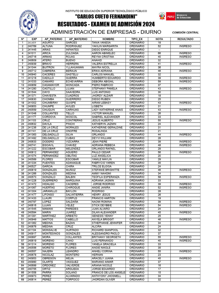 51 240949 MATTOS CABELLO ANYELA BRIGGIT ORDINARIO 46 INGRESO