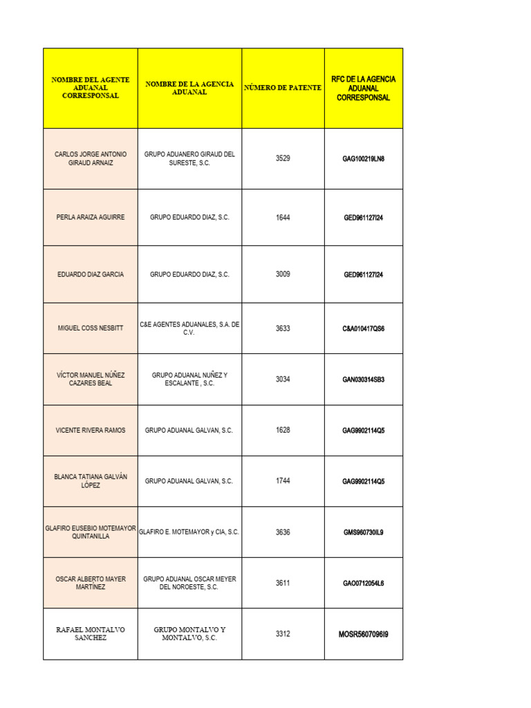AGENTE ADUANAL PATENTE RAZON SOCIAL RFC