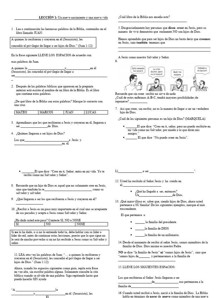 usted? MARQUE LO CORRECTO; solamente UNO) recibiéndolo como su Salvador y Señor? ___________________