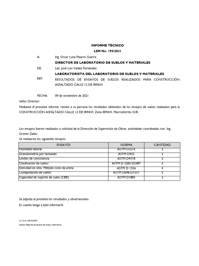 Ensayos de Suelos para Calle 12 Irpavi