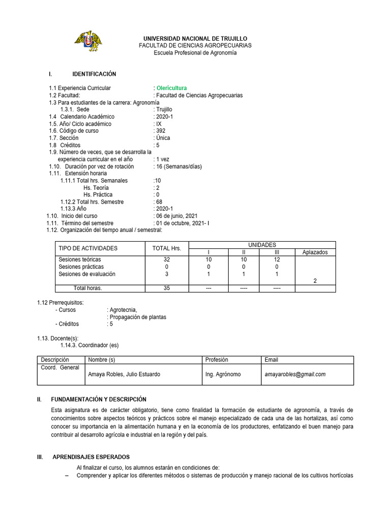 1.1 Experiencia Curricular : Olericultura