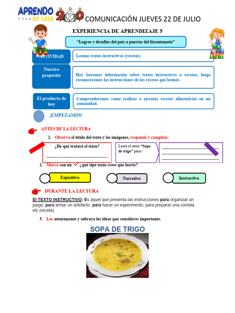 ACTIVIDAD Leemos textos instructivos (recetas)
