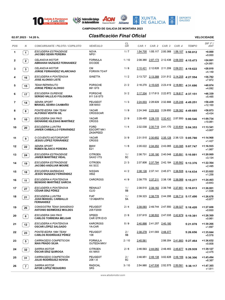 02.07.2023 · 14:20 h. Clasificación Final Oficial VELOCIDADE