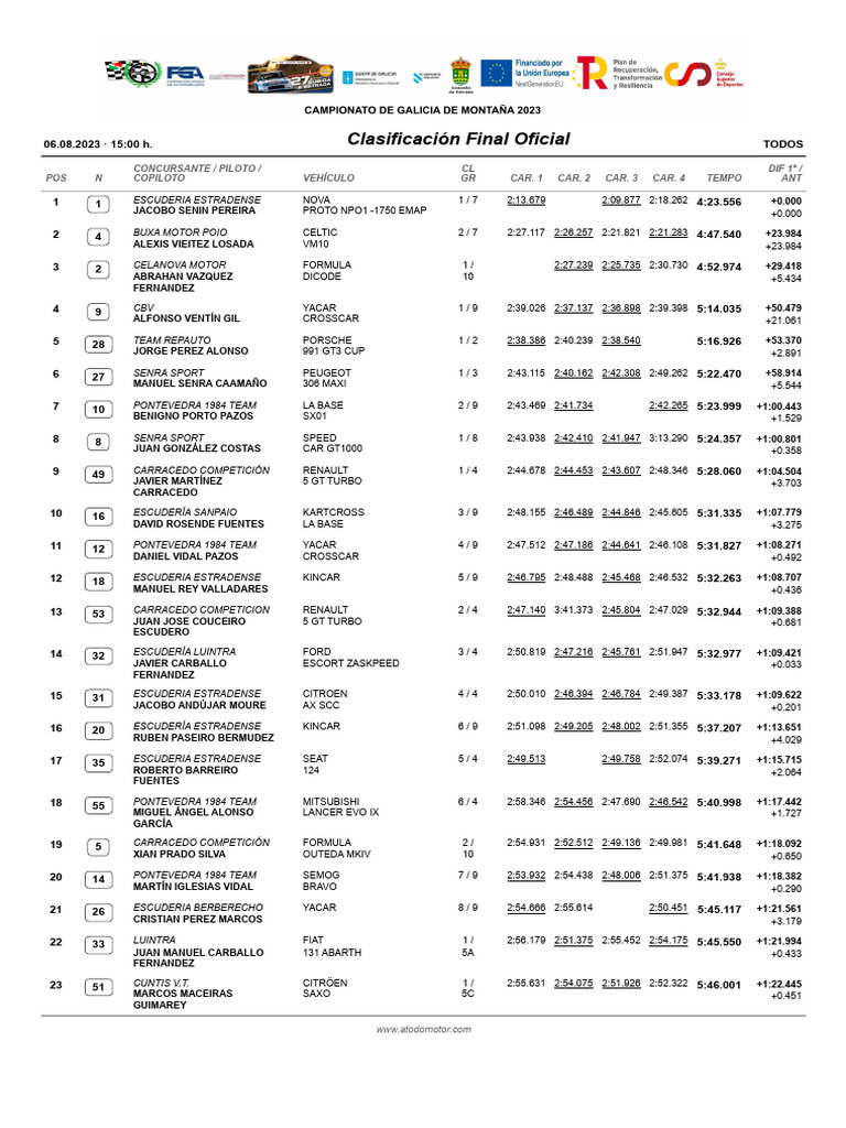 06.08.2023 · 15:00 h. Clasificación Final Oficial TODOS